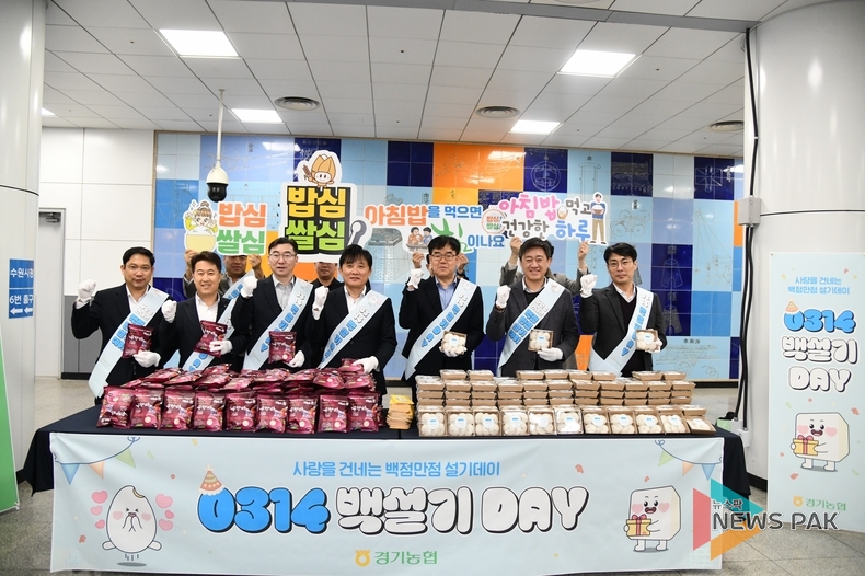 뉴스팍 배상미 기자 | 경기농협(본부장 엄범식)은 14일 수원시청역에서 쌀 소비촉진과 우리 쌀 우수성에 대한 국민적 공감대 형성을 위해 '백설기데이 나눔 행사'를 실시하였다.
