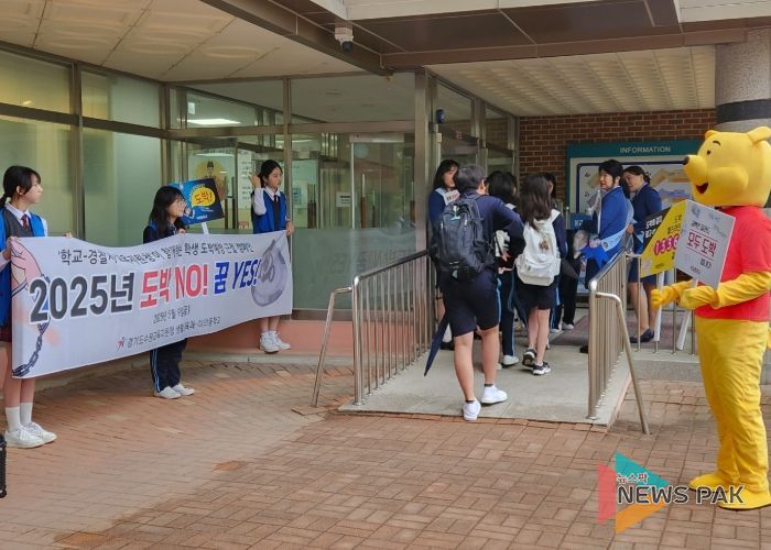 뉴스팍 배상미 기자 | 경기도수원교육지원청은 이의중학교, 수원남부경찰서와 협력하여 2025년 5월 9일 오전, 이의중학교 정문 앞에서 학생 도박 예방 및 근절을 위한 『2025년 도박 NO!, 꿈 YES!』 합동 캠페인을 실시했다.