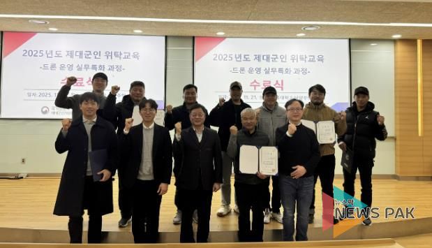 뉴스팍 배상미 기자 | 경기북부보훈지청 제대군인지원센터는 11월 21일에 경복대학교 평생교육대학(경기 남양주)에서 9월에 시작된 ‘드론 운영 실무특화’ 위탁교육과정을 성공적으로 마무리하고, 총 10명의 교육생 전원이 교육을 수료했다고 밝혔다.