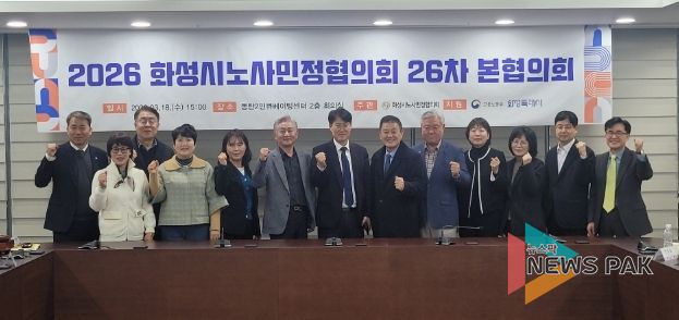 뉴스팍 류은정 기자 | 화성시노사민정협의회가 18일 동탄2 인큐베이팅센터에서 제26차 본협의회를 열고 지역 노동 현안과 산업안전 중심의 주요 사업계획을 논의했다.