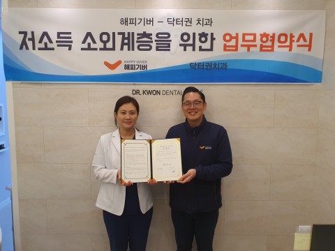 사단법인 해피기버(이하 해피기버)는 닥터권 치과의원(원장 권수연)과 3월 12일 서울시 노원구 중계동에 위치한 닥터권 치과의원에서 저소득 소외계층 가정들의 의료복지 여건증진을 위한 업무협약을 체결했다.