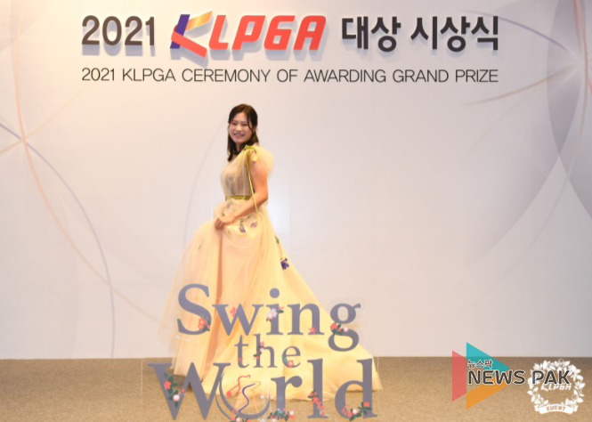 뉴스팍 이소율 기자 | ‘2021 KLPGA 대상 시상식’은 그 어느 때보다 더욱 밝게 빛났다. 참석한 선수들은 마스크를 착용해야 했지만, 화려한 피날레로 열리는 시상식인 만큼 의상을 통해 색다른 모습을 마음껏 뽐냈다. 특히, 선수들마다 각자 개성에 맞는 다양한 의상을 입고 참여해 시청하는 골프 팬들의 눈길을 끌었다.