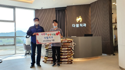 창원시 의창동에 위치한 다함치과(원장 문병용)가 이웃에게 전달해 달라며 의창동 행정복지센터에 쌀 300kg을 기증했다고 밝혔다.