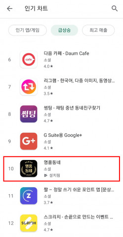 명품리뷰 앱 ‘명품동네’는 5일 구글플레이 소셜분야 인기차트에서 급상승 앱으로 선정됐다고 8일 밝혔다.