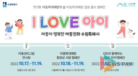 뉴스팍 배상미 기자 | 수원시가 아동학대예방의 날(11월 19일)을 맞아 아동의 소중함을 알리는 캠페인을 전개한다.