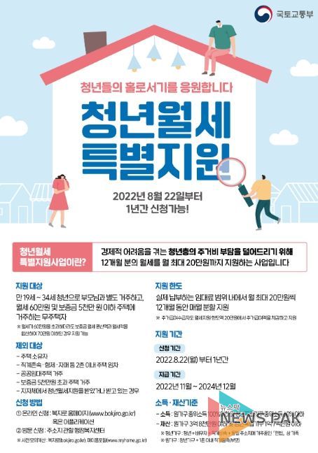 청년 월세 특별지원 사업은 생애 1회에 한해 월 20만 원씩 최대 12개월 동안 월세를 지원하는 사업이다.