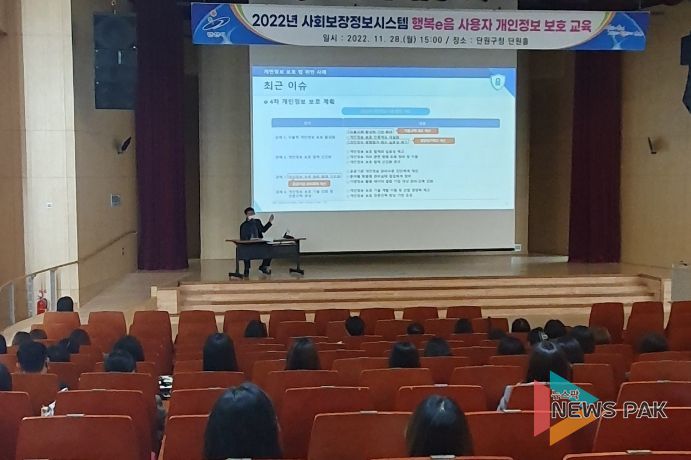 뉴스팍 진금하 기자 | 안산시는 지난 28일 사회보장정보시스템(행복e음) 사용자 150여 명을 대상으로 개인정보보호 교육을 실시했다고 29일 밝혔다.