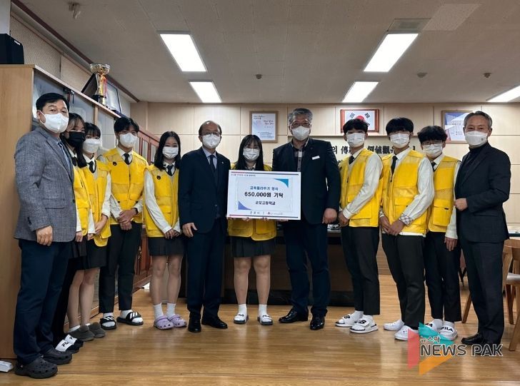 뉴스팍 진금하 기자 | 군포고등학교 학생들이 교복 물려주기 행사를 통해 모은 수익금을 경기도사회복지공동모금회를 통해 군포시에 이웃돕기 후원금으로 전달했다.