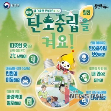 뉴스팍 진금하 기자 | 용인특례시가 다음달부터 내년 2월까지 진행하는 정부의 동절기 탄소중립 실천 캠페인에 동참, 6대 실천방안 홍보에 나선다고 30일 밝혔다.