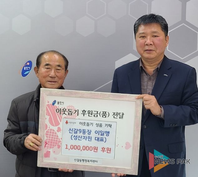 용인특례시 기흥구 신갈동은 지난 1일 신갈9통장 이일행 씨가 취약계층을 돕는 일에 써달라며 성금 100만원을 기탁했다고 2일 밝혔다.