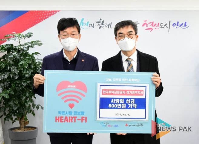 뉴스팍 진금하 기자 | 안산시는 8일 한국주택금융공사 경기중부지사로부터 관내 독거 어르신을 위한 후원금 500만 원을 기탁받았다.