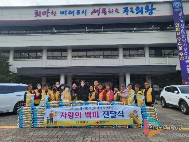 뉴스팍 진금하 기자 | 의왕시 대한적십자사 봉사회는 지난 12일 의왕시청에서 사랑의 쌀 나눔 봉사 및 전달식을 가졌다.