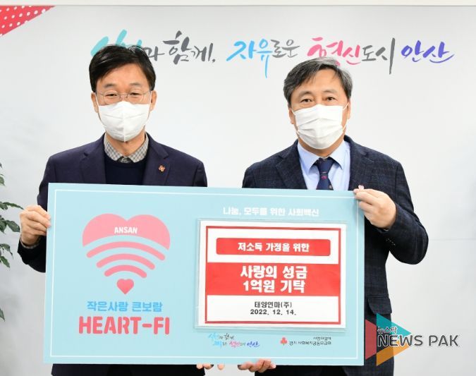 뉴스팍 진금하 기자 | 안산시는 지난 14일 ㈜태양연마로부터 취약계층 지원을 위한 성금 1억 원을 기탁받았다고 15일 밝혔다.