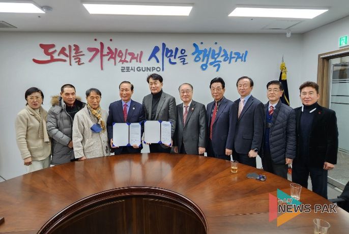 뉴스팍 진금하 기자 | 군포시와 (사)해외동포책보내기운동협의회는 12월 16일 군포시청에서 상호 협력을 위한 업무협약(MOU)을 체결했다고 밝혔다.