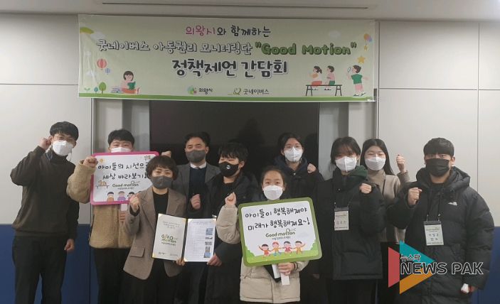 뉴스팍 진금하 기자 | 의왕시 아동권리 모니터링단 굿모션은 지난 22일 시청 영상회의실에서 열린 정책제언 간담회에서 그간의 활동 결과를 보고하고 의왕시 아동권리 증진을 위한 정책제안문을 전달했다.