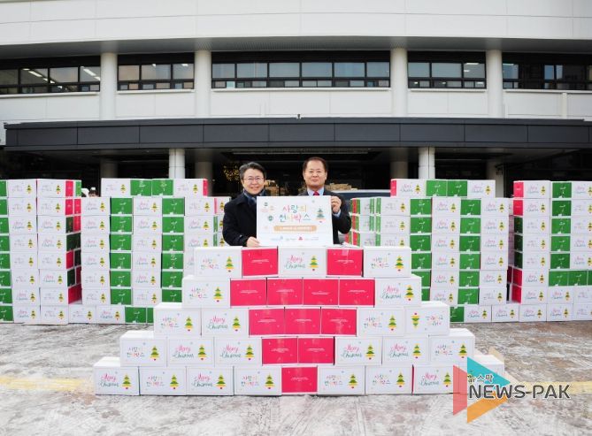 뉴스팍 진금하 기자 | 의왕시는 새중앙교회에서 크리스마스를 맞아 어려운 이웃을 위한 생필품꾸러미(사랑의 천사박스) 1,004상자(4,016만원 상당)를 23일 기부했다고 밝혔다.