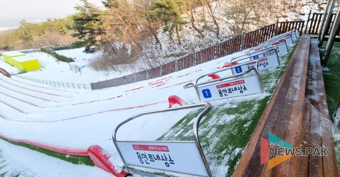 이에 시는 지난 8월부터 정비공사에 착수해 길이 71m, 폭 1.5m의 6개 레인으로 구성된 썰매장을 설치하고 기존 매점과 휴식 공간을 정비 및 보강했다. 공사에는 시비 17억 원이 투입됐다.