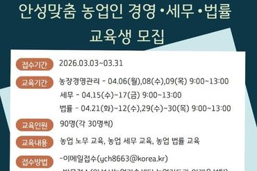 안성시, '안성맞춤 농업인 경영·세무·법률 교육' 교육생 모집!