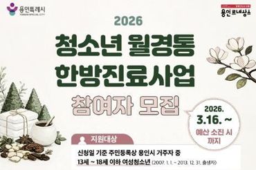 용인특례시, 여성 청소년 '월경통 한방진료' 지원