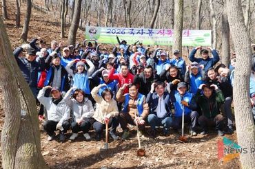 안성시 삼죽면 국사봉산악회, 국사봉 등산로 식목행사 실시