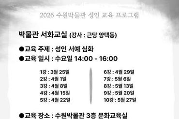 수원박물관, 2026년 상반기 성인 교육 프로그램 수강생 모집