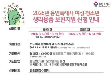 용인특례시, 여성 청소년 생리용품 보편지원사업 신청 접수