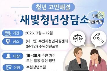고민 있는 수원 청년, '새빛청년상담소'로 오세요!