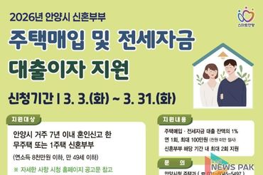 안양시, 신혼부부 주택매입・전세 대출이자 지원…주거비 부담 완화
