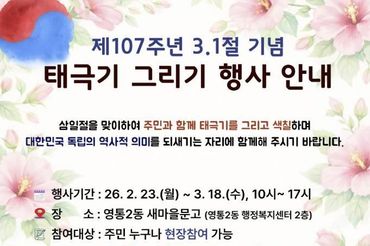 수원시 영통구 영통2동, 새마을문고 3·1절 기념 '태극기 그리기' 행사 운영