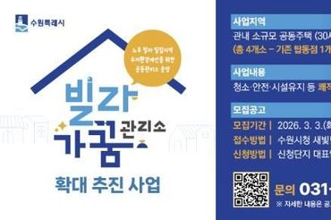수원특례시, '2026년 빌라가꿈관리소 확대 추진사업' 대상지 모집