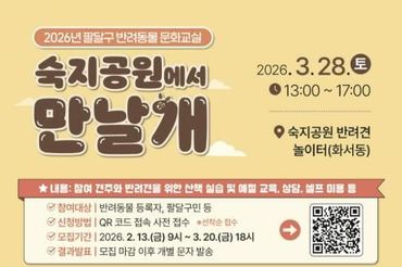 수원시 팔달구, 2026년 반려동물 문화교실 '숙지공원에서 만날개' 개최
