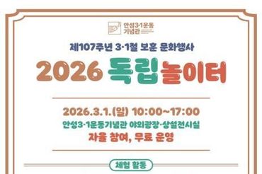 안성3·1운동기념관, 제107주년 3·1절 보훈 문화행사 '2026 독립놀이터' 개최
