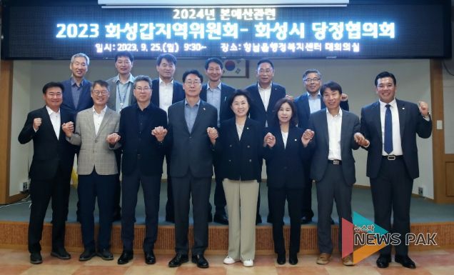 뉴스팍 류은정 기자 | 송옥주 더불어민주당 화성갑 지역위원장과 정명근 화성시장을 비롯한 도의원, 시의원, 관계 공무원은 25일 향남읍행정복지센터에서 2024년 본예산 수립 및 지역 현안 해결을 위한 당정협의회를 실시했다.