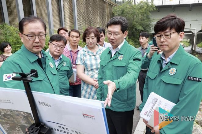뉴스팍 류은정 기자 | 이상일 용인특례시장은 11일 오전 기흥구 마북동 마북천을 둘러보며 하천의 수질 문제를 살피고 시의 개선조치 상황을 점검했다.