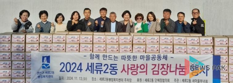 뉴스팍 이화형 기자 | 수원시 권선구 세류2동 단체장협의회에서는 지난 13일 관내 취약계층을 위한 사랑의 김장 나눔 행사를 실시했다.
