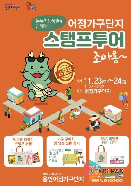 뉴스팍 배상미 기자 | 용인특례시는 상점가로 지정된 기흥구 어정가구단지(기흥구 언동로 193-14)에서 23~24일 이틀간 ‘스탬프 투어 조아용’ 이벤트를 연다고 22일 밝혔다.