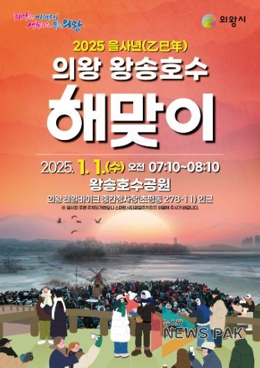 뉴스팍 류은정 기자 | 의왕시는 2025년 1월 1일 오전 7시 왕송호수 의왕 레일바이크 중간정차장 일원에서 ‘2025 의왕 왕송호수 해맞이 행사’를 개최한다.