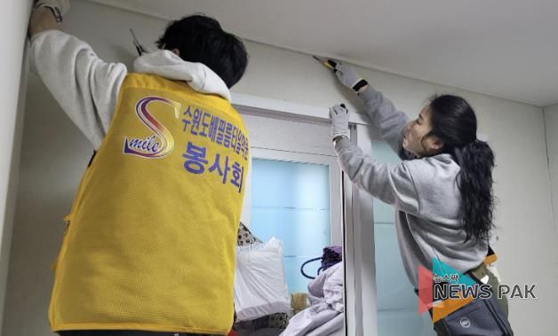 뉴스팍 배상미 기자 | 수원시 장안구 조원1동은 지난 주말, 수정인테리어기술전문학원 스마일봉사단 단원 12명이 관내 저소득 장애인 가구를 찾아 도배 봉사활동을 진행했다고 밝혔다.