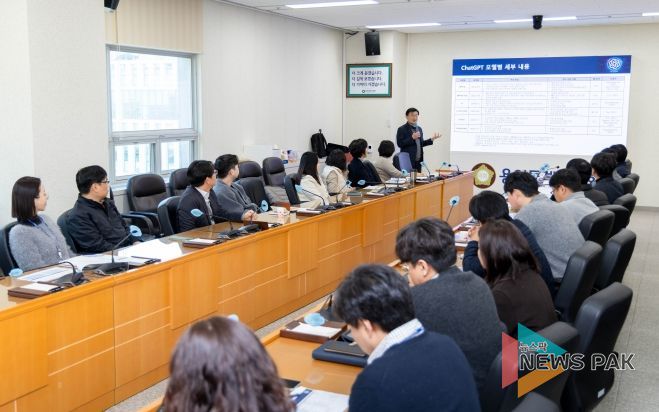 뉴스팍 배상미 기자 | 용인특례시의회는 24일 오후 2시 의회 대회의실에서 의회사무국 직원을 대상으로 챗GPT와 관련된 교육을 실시했다.
