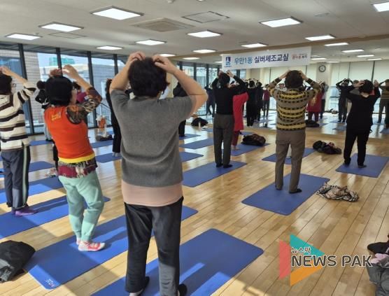 뉴스팍 배상미 기자 | 수원시 팔달구 우만1동은 관내 어르신들의 건강을 증진시키고 활기찬 생활을 돕기 위해 올해도 수원시체육회와 협력하여 ‘실버체조교실’을 운영한다. 3월 6일부터 7월 3일까지 매주 목요일 오후 3시부터 3시 40분까지 총 16회기로 진행될 예정이다.