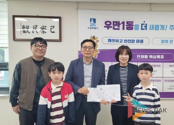 뉴스팍 배상미 기자 | 수원시 팔달구 우만1동에서 아이들이 지역발전을 위해 직접 민원을 전달하는 특별한 만남이 열렸다.