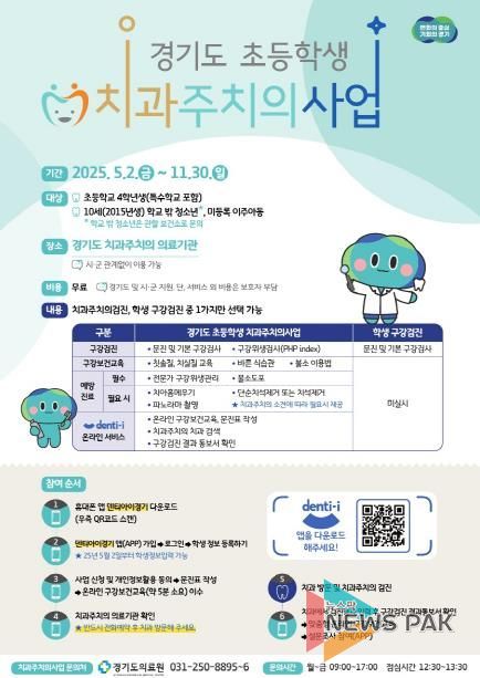 뉴스팍 배상미 기자 | 경기도가 5월 2일 초등학교 4학년을 대상으로 예방 중심의 구강 관리 서비스를 제공하는 ‘2025년 초등학생 치과주치의 사업’을 시행했다.