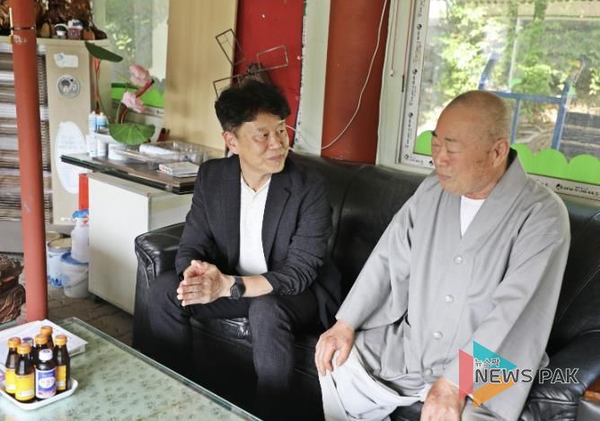 이날은 관내 사찰 종교시설인 용화사(조계종)와 무학사(태고종)에 방문하여 종교 지도자를 만나, 현장의 애로사항을 청취하고 환담하는 시간을 가졌다.