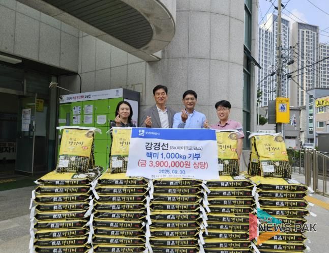 뉴스팍 배상미 기자 | 수원시 장안구 정자1동에 소재하는 SK마이크로웍스 소속 강경선 부장은 민족의 대명절인 추석을 맞아 지역 내 어려운 이웃들에게 따뜻한 나눔을 전하기 위해 지난 30일 정자1동행정복지센터에 쌀 1,000kg을 기부했다.