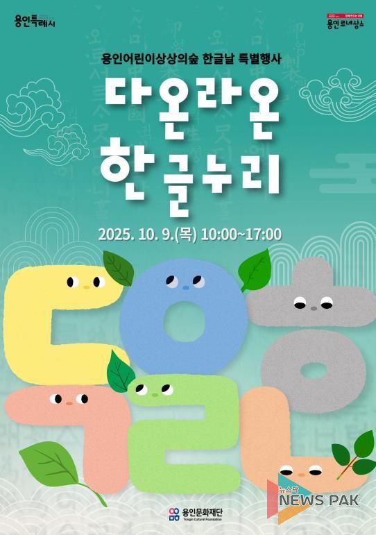 용인문화재단 ‘다온라온 한글누리’ 사업 담당자는 “이번 행사를 통해 어린이와 가족이 함께 즐길 수 있는 문화적 경험을 제공하고, 한글의 소중한 가치를 되새기는 시간을 마련하고자 한다”며, “앞으로도 지역 시민과 긴밀히 소통하며 다양한 문화예술 프로그램을 지속적으로 선보일 것”이라고 말했다.