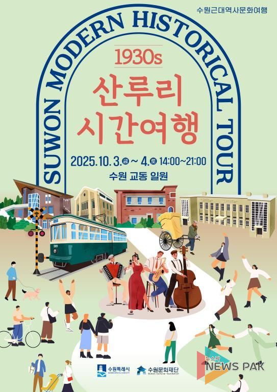 뉴스팍 배상미 기자 | 수원문화재단은 오는 10월 3일 금요일부터 4일 토요일까지 수원 근대 역사자원을 배경으로 한 테마행사 ‘산루리 시간여행 1930s’를 개최한다. 이번 행사는 1930년대 수원의 생생한 생활상과 문화를 재현하여 수원의 근대유산 자원을 새롭게 조망하고, 시민과 관광객에게 색다른 역사문화 여행의 기회를 제공할 예정이다. 이 행사는 수원시 계획공모형 지역관광개발사업 일환으로 추진되는 건으로, 지역의 역사와 문화를 활용한 관광 활성화를 목표로 하고 있다.