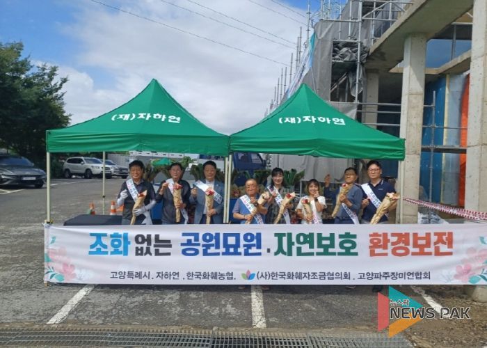 뉴스팍 배상미 기자 | 고양특례시는 플라스틱 조화 사용 근절을 통한 친환경 추모 문화 확산과 지역 꽃 소비 촉진을 위해 오는 5일 내유동 추모공원(공설․공동묘지)에서‘생화 헌화 캠페인’을 추진한다고 밝혔다.