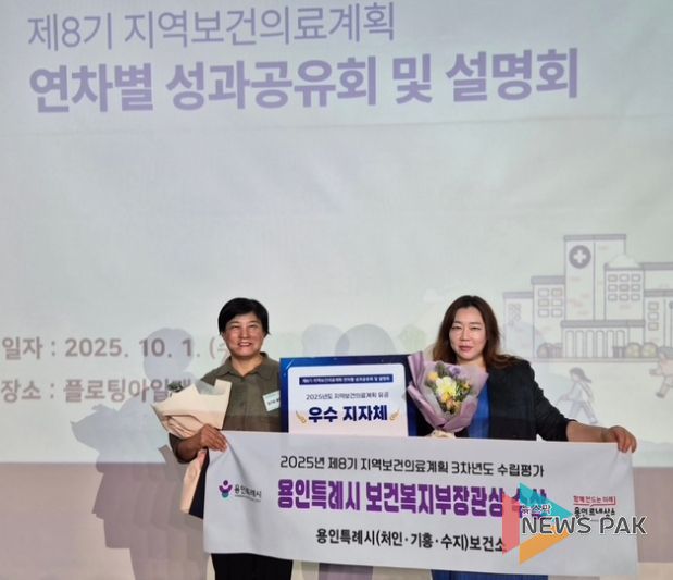 뉴스팍 배상미 기자 | 용인특례시는 보건복지부의 ‘제8기 지역보건의료계획(2023~2026)’ 3차년도 실행계획 수립 평가에서 우수 지자체로 선정돼 보건복지부 장관 표창을 수상했다고 2일 밝혔다.