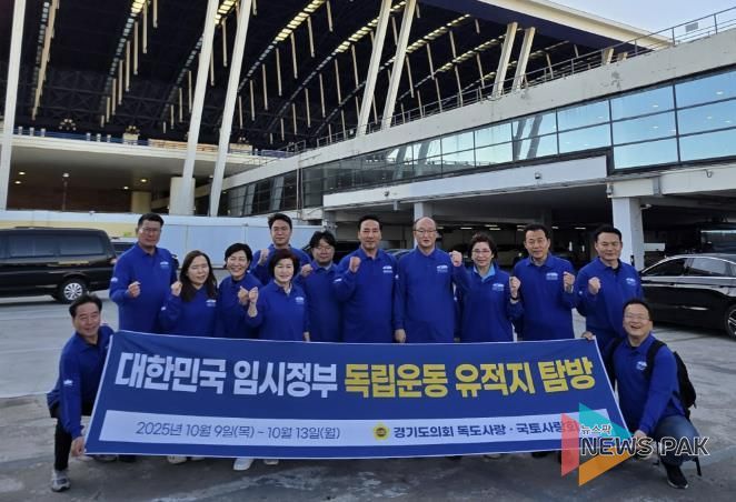 뉴스팍 배상미 기자 | 경기도의회 ‘독도사랑ㆍ국토사랑회’는 광복 80주년을 맞아 10월 9일부터 4박 5일 일정으로 중국 상하이(上海) 및 항저우(杭州) 일대의 대한민국 임시정부 유적지 탐방에 나섰다.