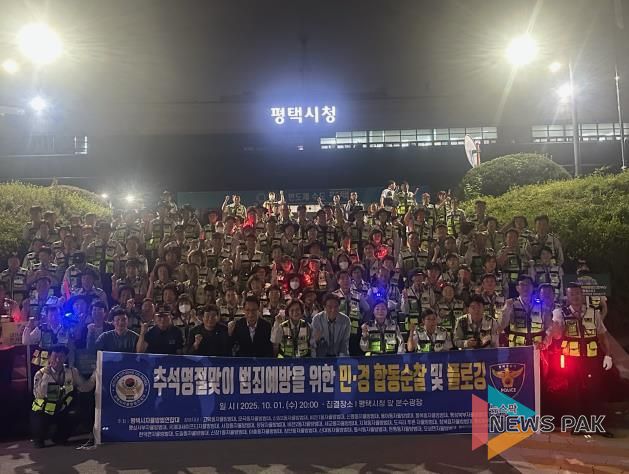 뉴스팍 이소율 기자 | 2025년 추석 명절을 맞아, 평택시는 지난 10월 1일 지역 주민들의 안전한 명절 환경조성을 위해 자율방범연합대 및 자율방범대원들과 함께 합동 순찰을 진행했다.